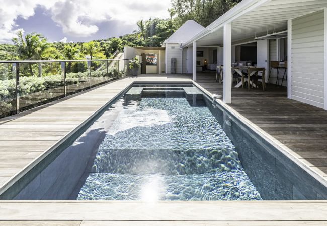 La villa en San Bartolomé posee 3 dormitorio(s) y capacidad para 6 personas. Dispone de barbacoa, acceso internet (wifi), secador, aire acondicionado, piscina privada, parking aire libre en mismo edificio, 3 Televisores.La cocina americana, de gas, está equipada con nevera, microondas, horno, congelador y lavavajillas.