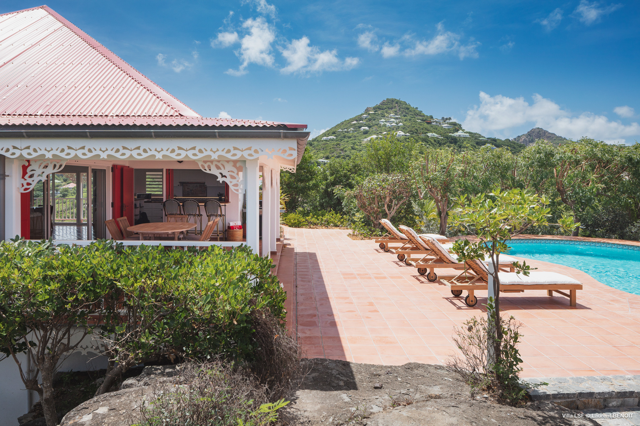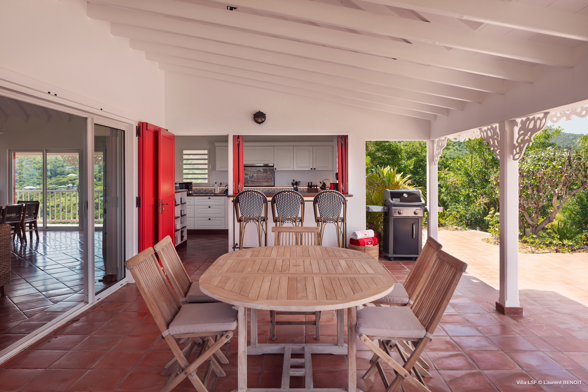The house is located in the family and residential area of Camaruche, halfway between Lorient, where famous French singer Johnny Halliday is buried, and Marigot. You will appreciate the hilly terrain of this part of the island, a great starting point for hiking excursions through the surrounding hills, always with a sublime view of the islands of St Martin, Tortle island and Anguilla.